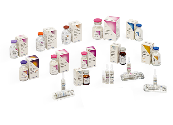 Aculife offers the complete range of small volume injectables in sizes ranging from 0.5 ml to 100 ml, which includes aseptically-filled products and post-sterilized products like dry powder injectables, lyophilized products, liquids in form of aqueous, emulsions and suspensions. These cover various therapeutic segments like antiemetic (Metoclopramide, Ranitidine), proton pump inhibitors (Omeprazole, Pantoprazole), cephalosporins, penicillin, intravenous antibiotics including general and advanced molecules (Ciprofloxacin, Ofloxacin, Levofloxacin, Metronidazole, Tinidazole, Fluconazole and Linezolid) Diuretics (Frusemide,), Opthalmic preparations (Ciprofloxacin, Norfloxacin, Ofloxacin with and without Dexamethazone), etc. in various presentations including plastic ampoules, glass ampoules and glass vials. Aculife also offers diluents such as sterile water for injection, normal saline, sodium bicarbonate in a volume range of 0.5 to 30 ml.